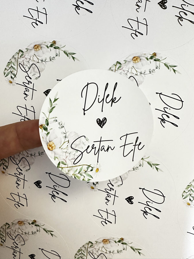 Yapışkanlı etiketimiz 7 cm çapındadır, minimum 20 adet üretilir.