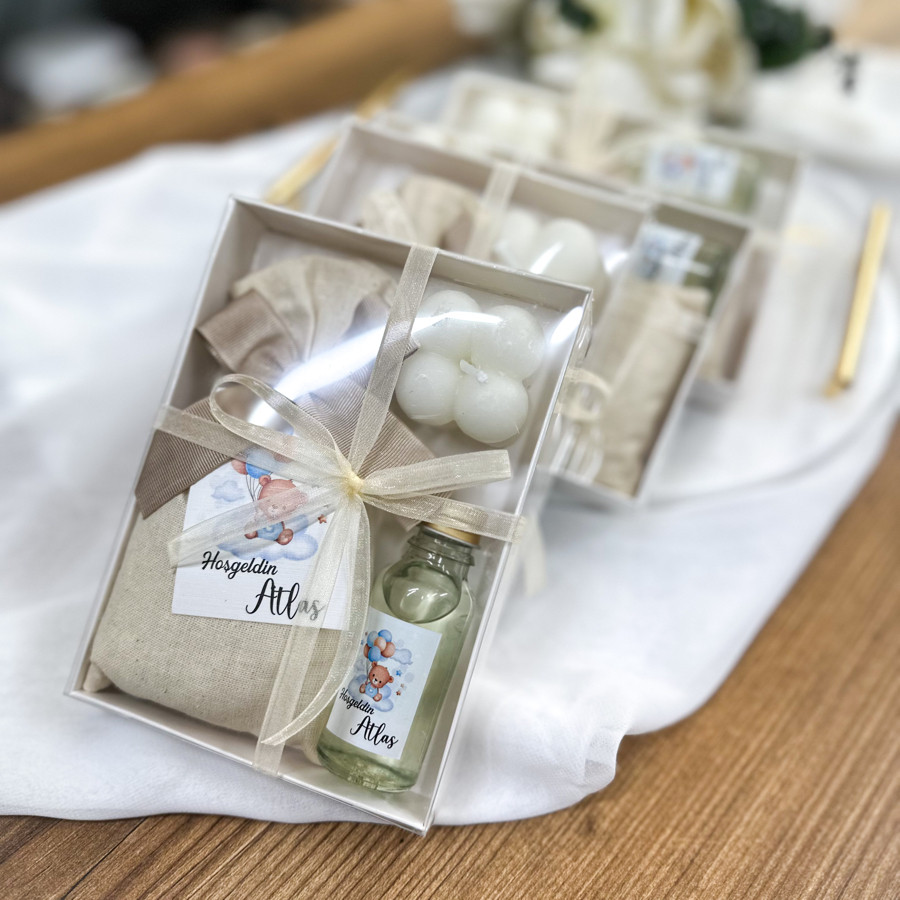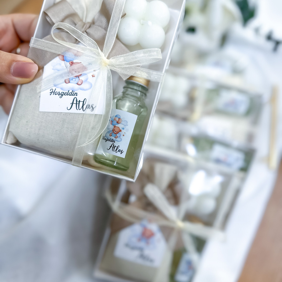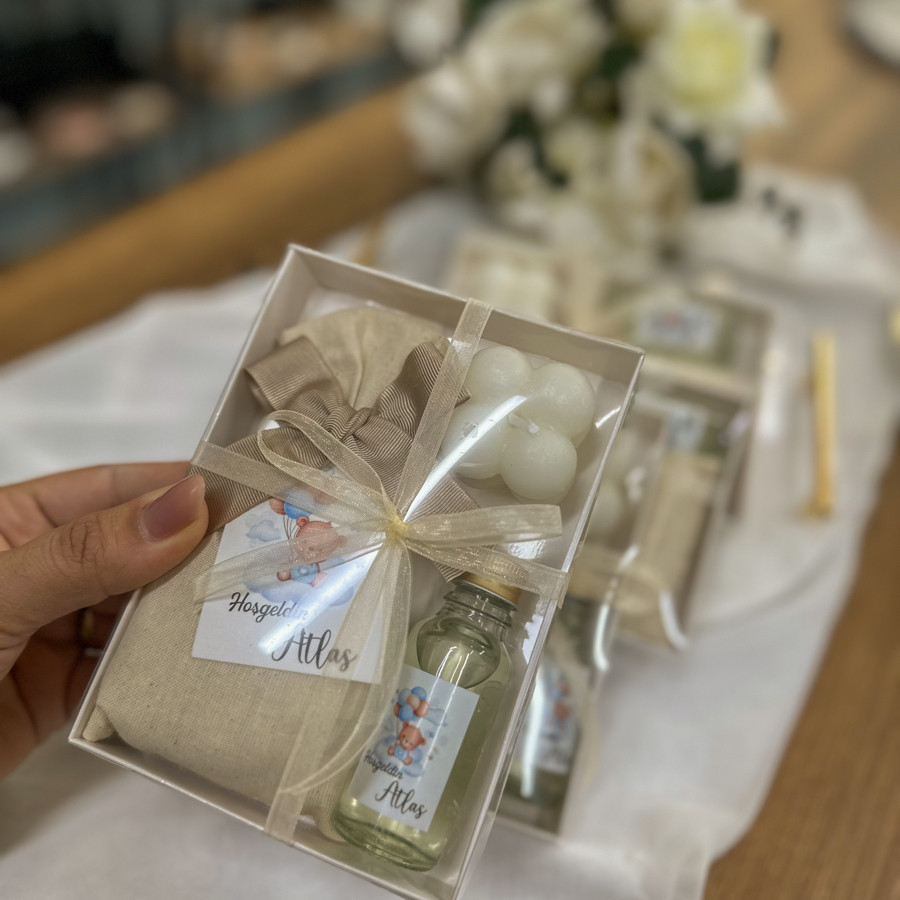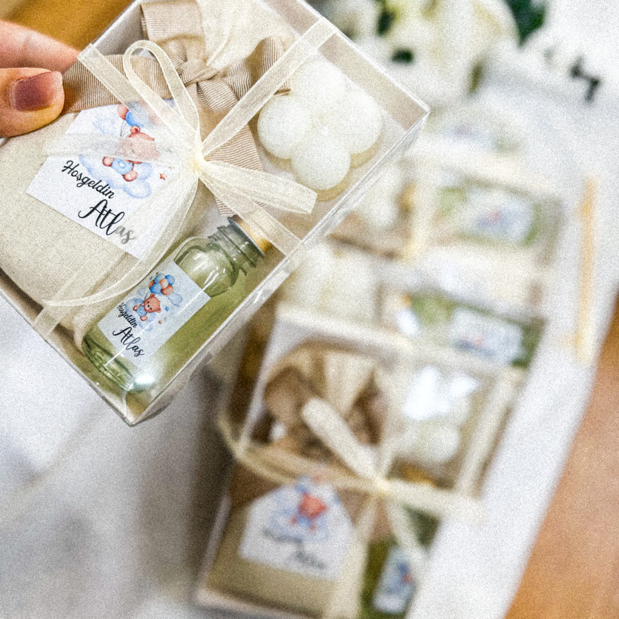 Hediyelik setimiz bubble mum, lavanta kesesi ve kolonya hediyelikten oluşur. Etiketler kişiye özel düzenlenir. Bilgilerinizi sipariş notunda belirtebilirsiniz. Minimum 30 adet çalışıyoruz.