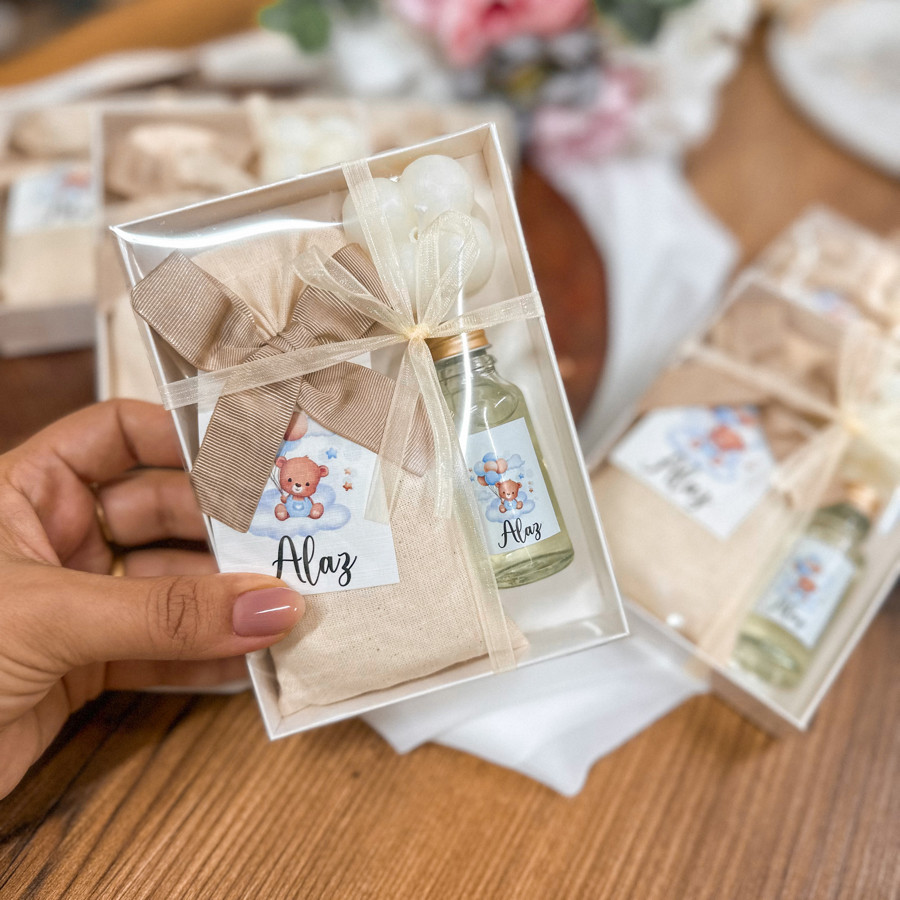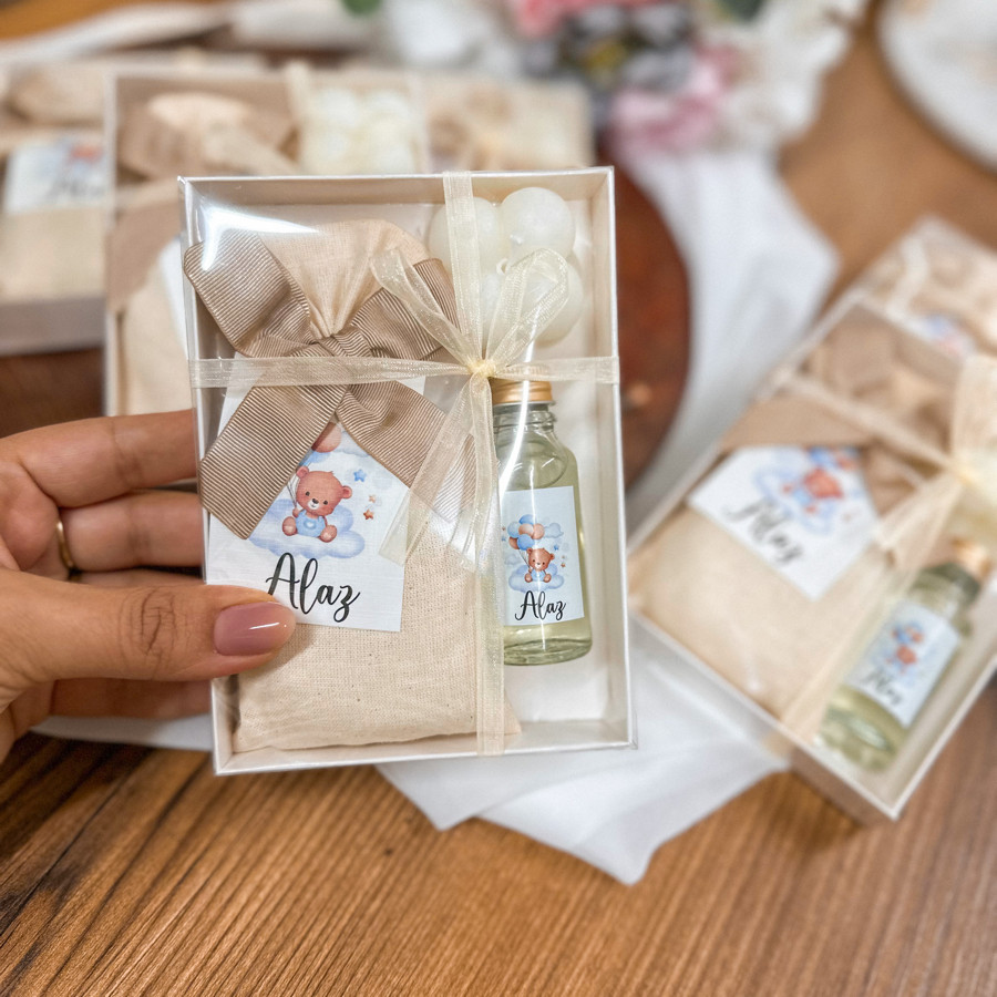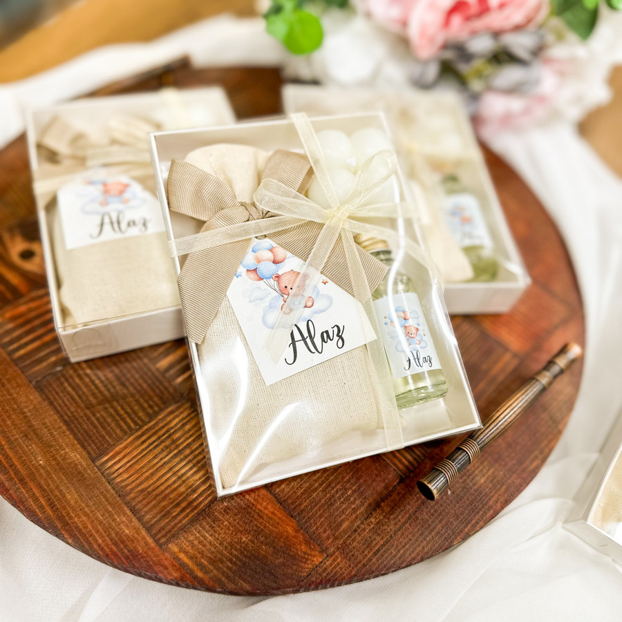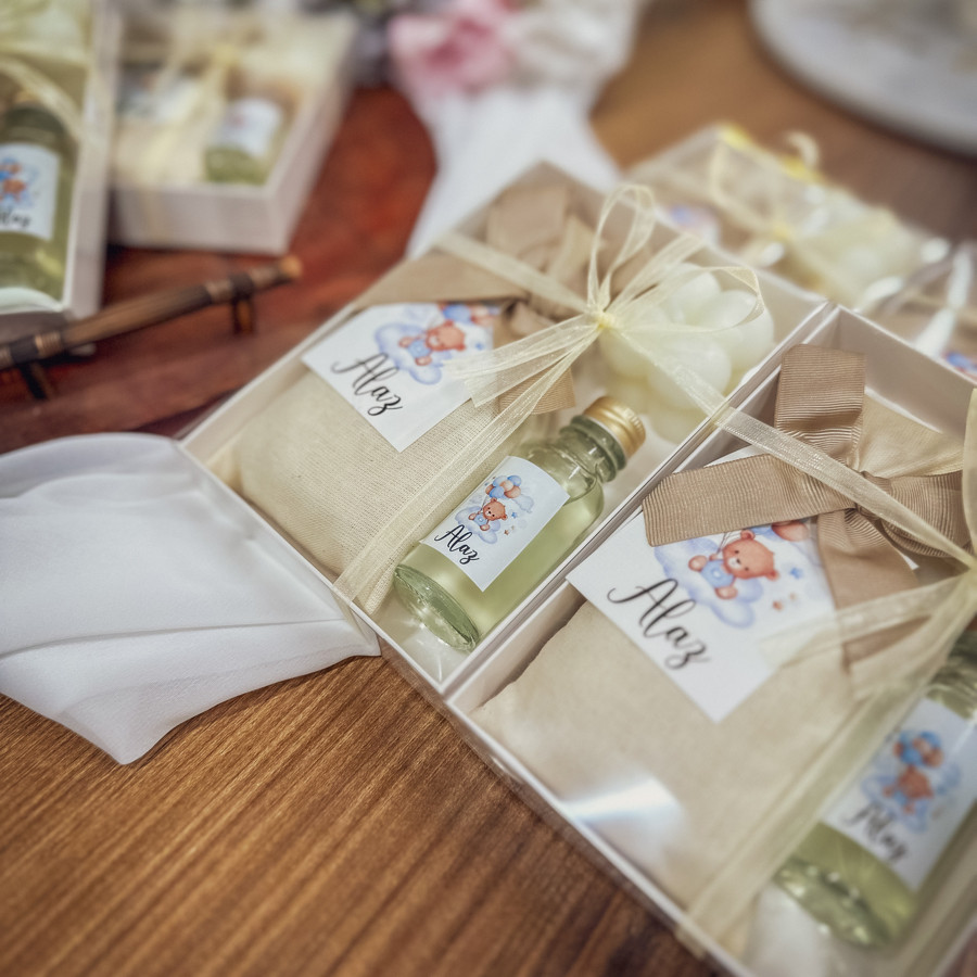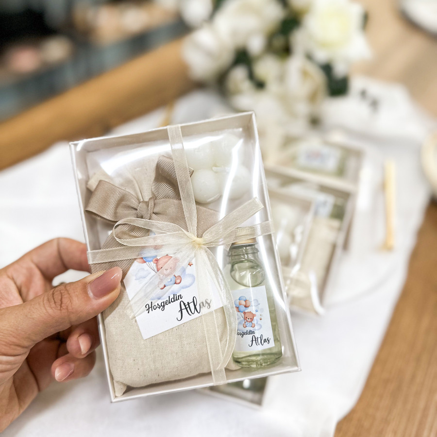 Hediyelik setimiz bubble mum, lavanta kesesi ve kolonya hediyelikten oluşur. Etiketler kişiye özel düzenlenir. Bilgilerinizi sipariş notunda belirtebilirsiniz. Minimum 30 adet çalışıyoruz.