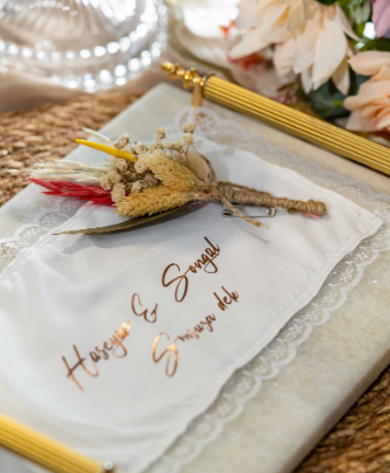 Buket arkasında iğneli broşumuz, kullanım kolaylığı sağlamıştır.