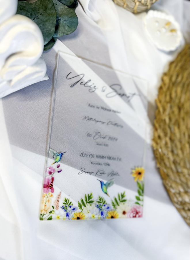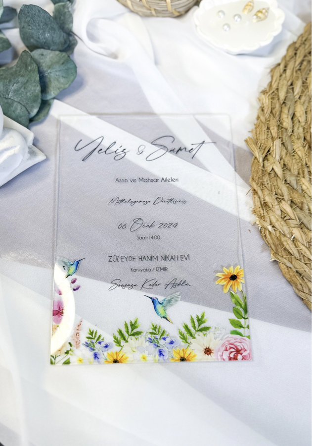 Zarfsız davetiyemizin ölçüsü 13x18 cm dir.