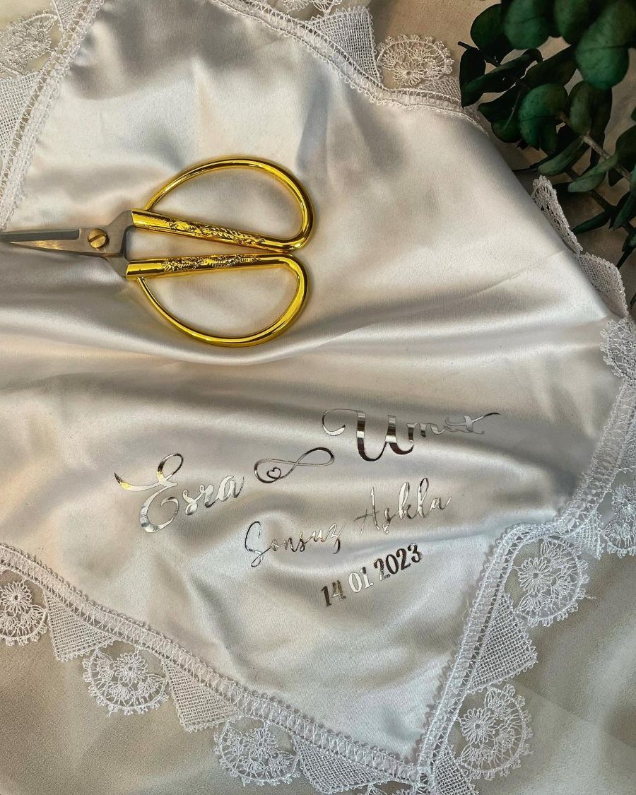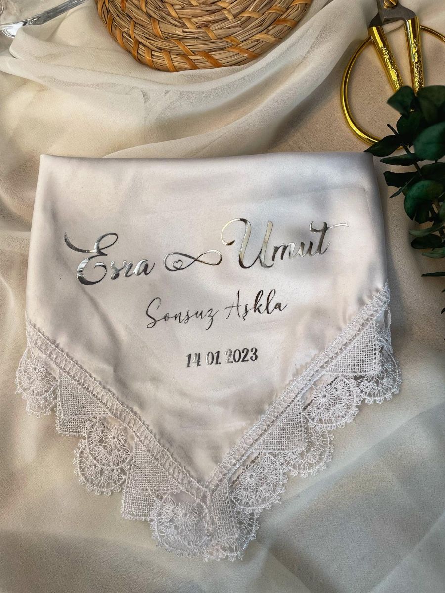 Söz mendilimizin ölçüsü 25x25 cm dir. Etrafı dantel şeritlidir.
