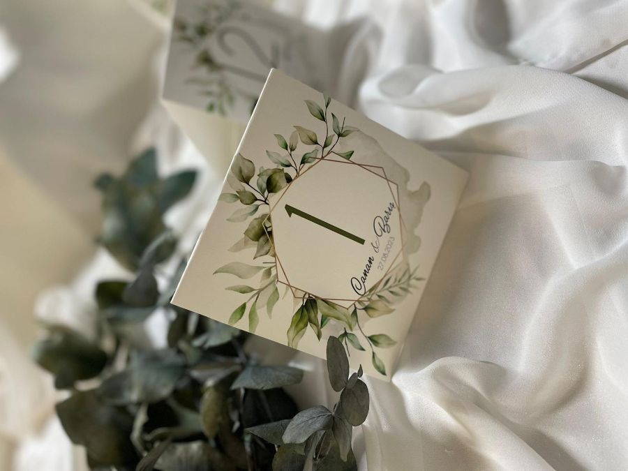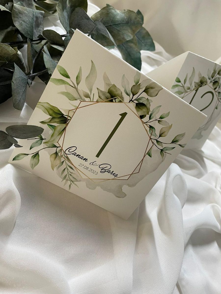Masa kartımız katlamalı olarak ölçüsü 12x12 cm dir.