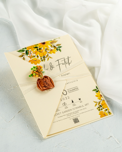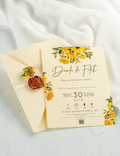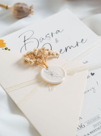 Davetiyemiz kişiye özel hazırlanır. 315 gram özel dokulu kağıttan hazırlanır.