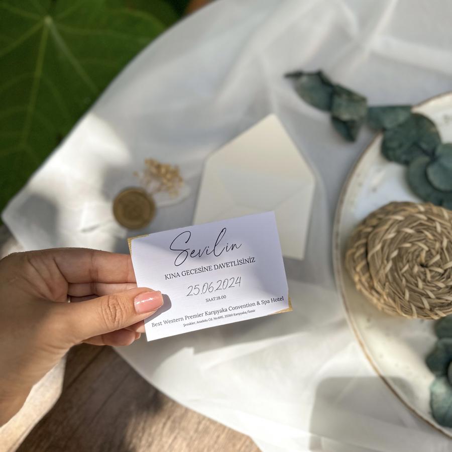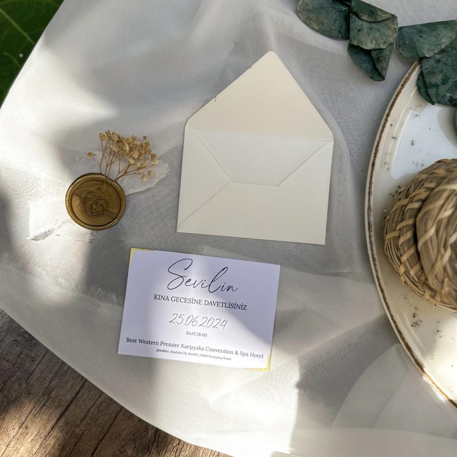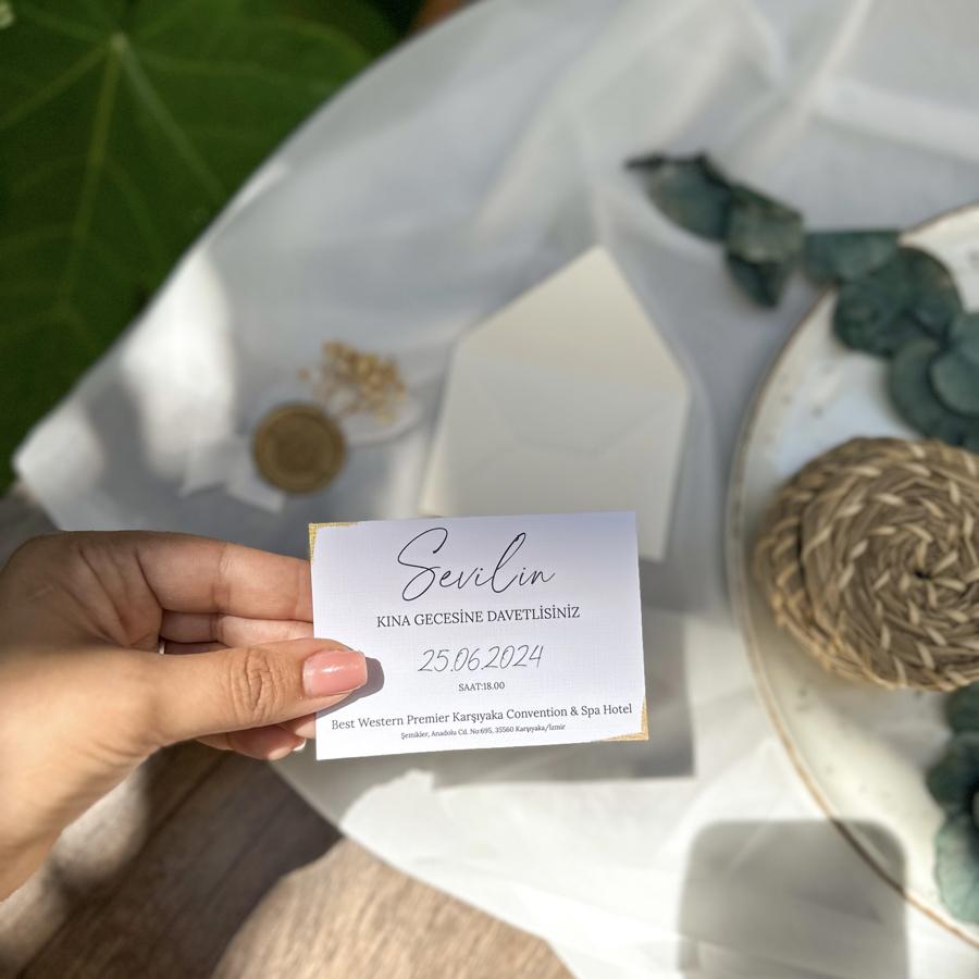 Davetiye ölçümüz 10x7 cm dir. Altın yaldızlar el boyamasıdır. Minimum 50 adet çalışıyoruz.