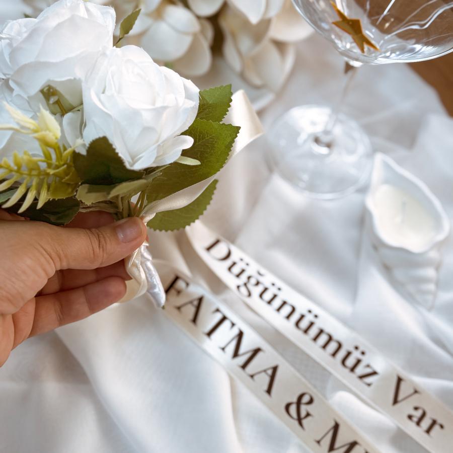 Kurdelemizin ölçüsü 1,5 metredir. Buket ile birlikte gönderilir. Bilgilerinizi sipariş notunda belirtebilirsiniz.