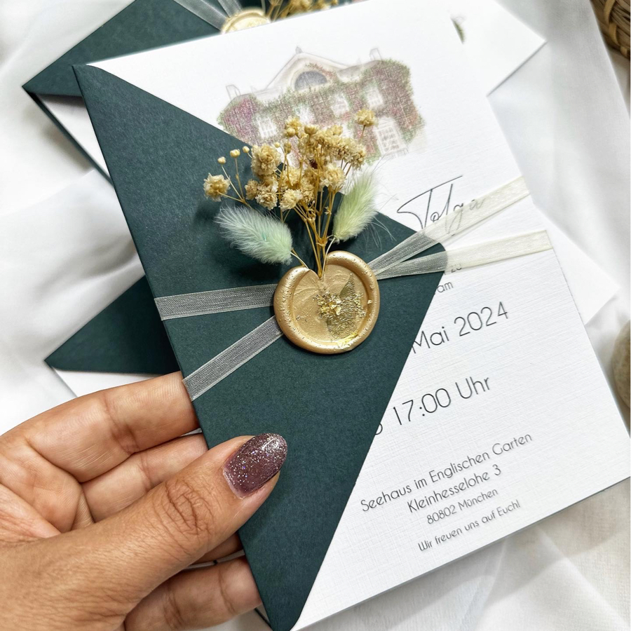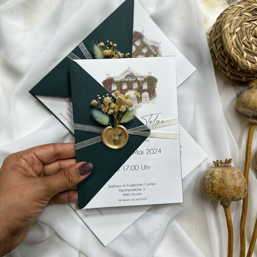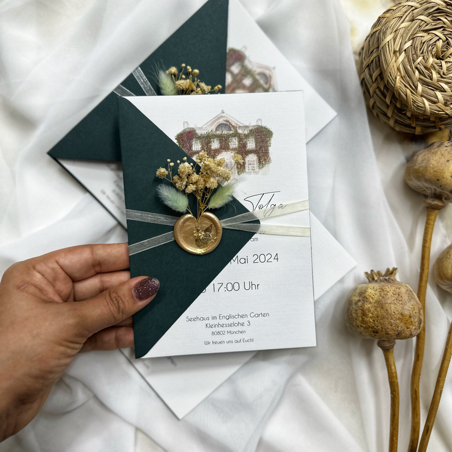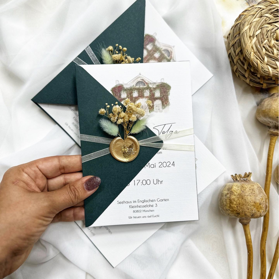 Davetiyemizin ölçüsü 13x18 cm dir.