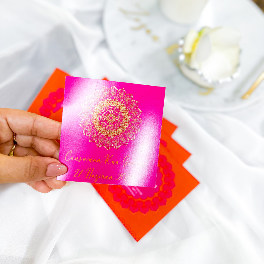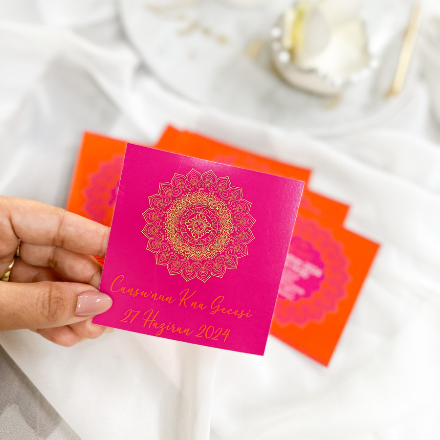 Davetiyemiz 10x10 cm ölçüsündedir.