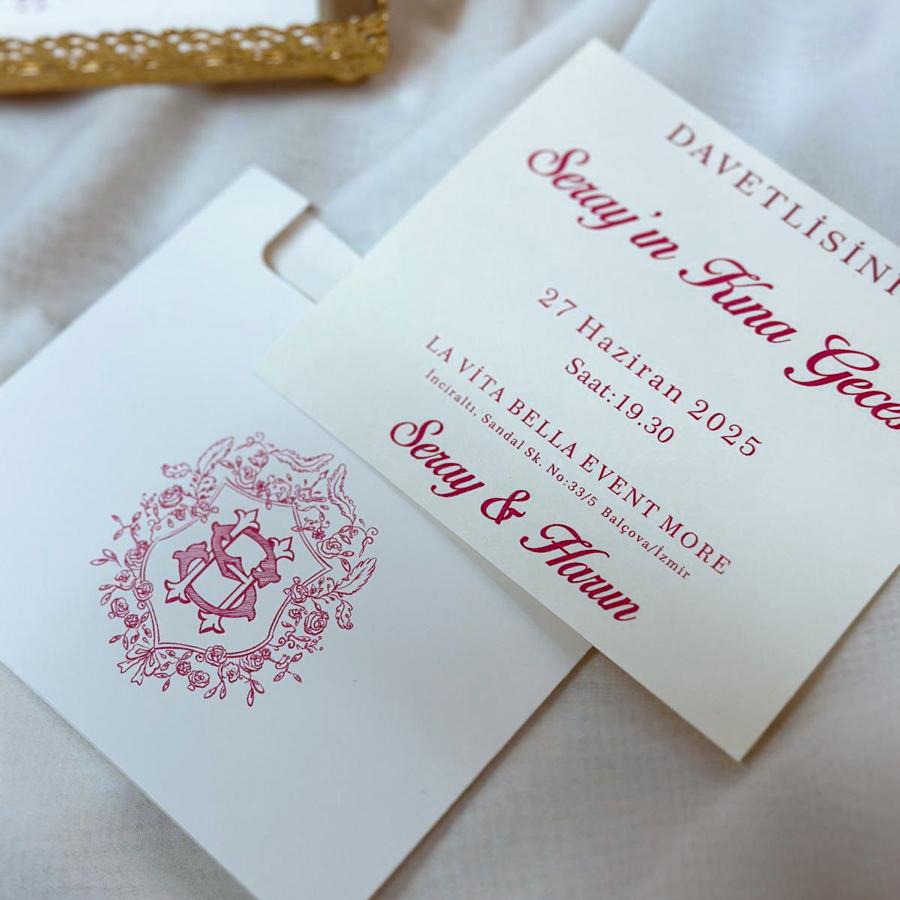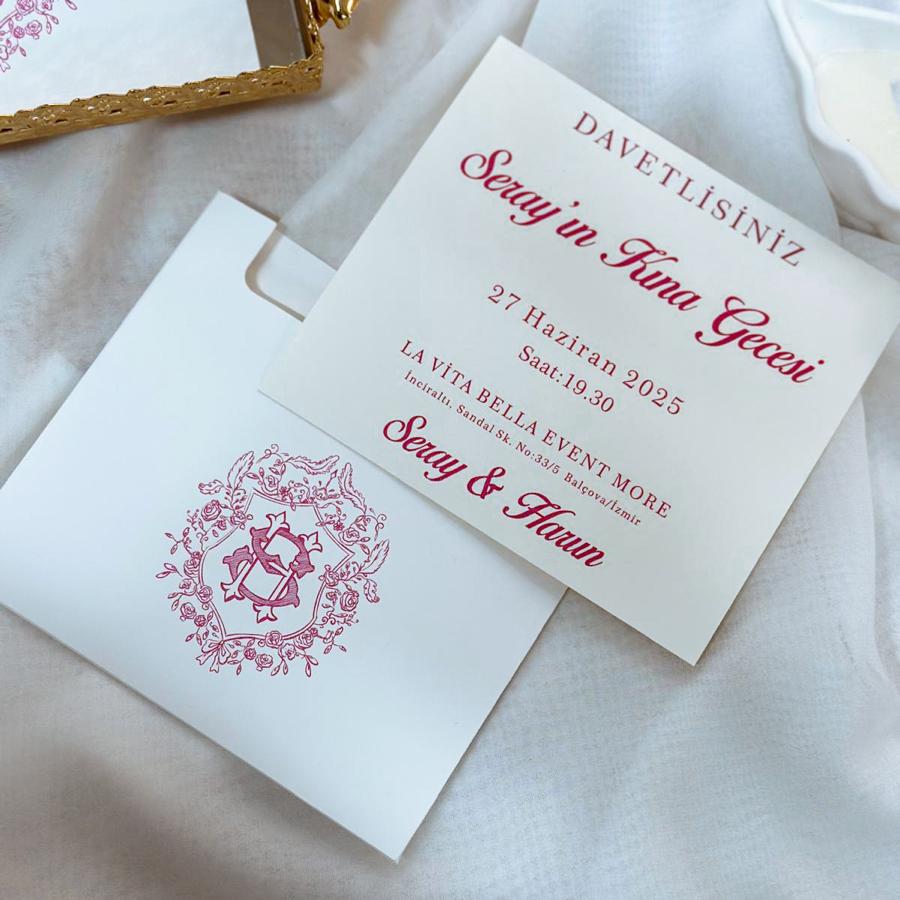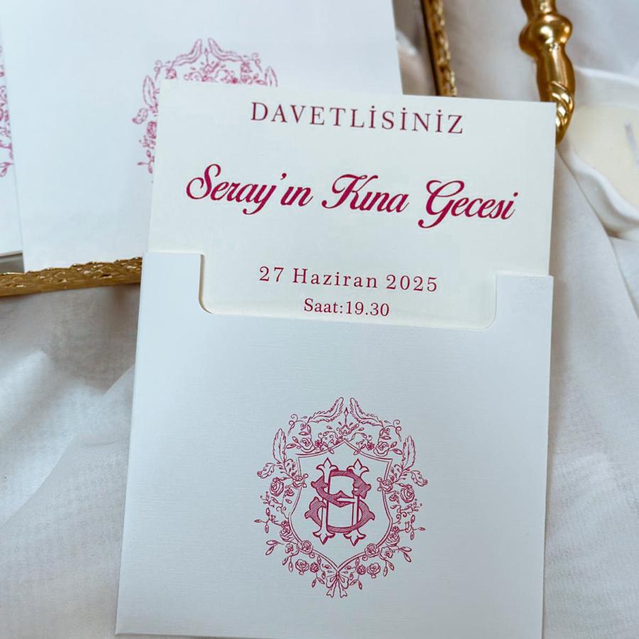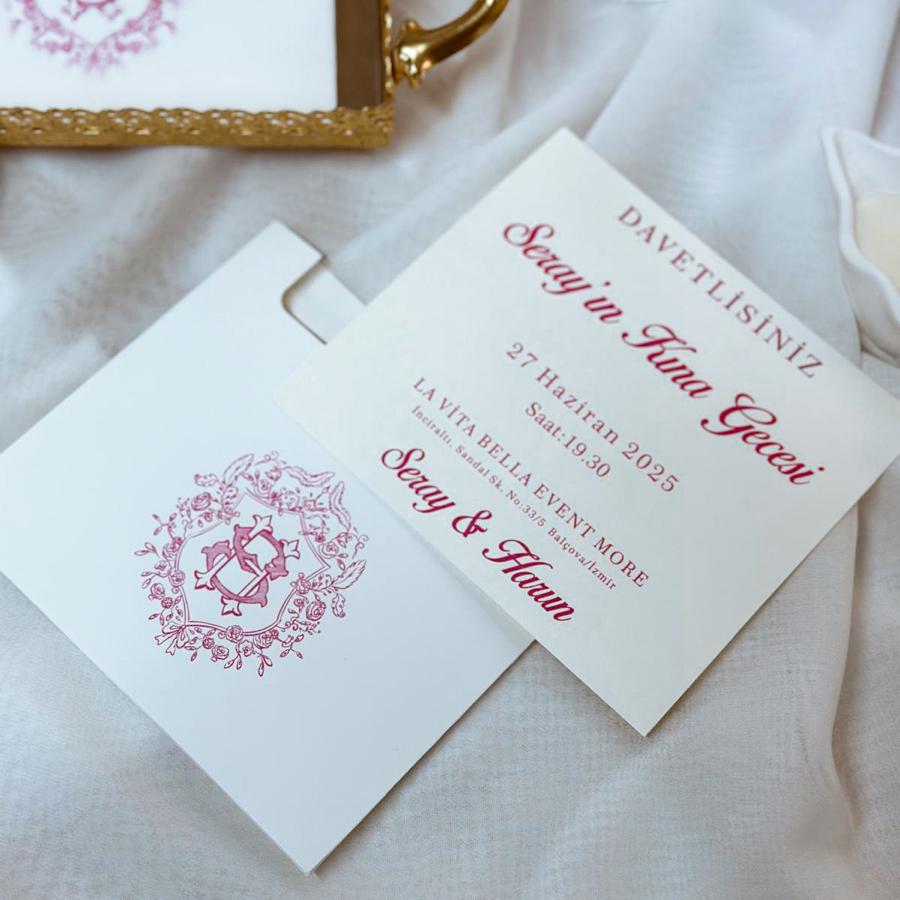Davetiyemizin ölçüsü 13,5x12,5 cmdir.