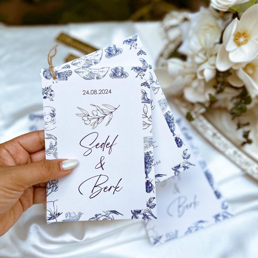 Davetiyemizi minimum 100 adet çalışıyoruz.16x11.5 ölçüsü Bilgilerinizi sipariş notunda belirtebilirsiniz. Demonte olarak gönderiyoruz,bağlamalı isterseniz bize ulaşabiliirsiniz.