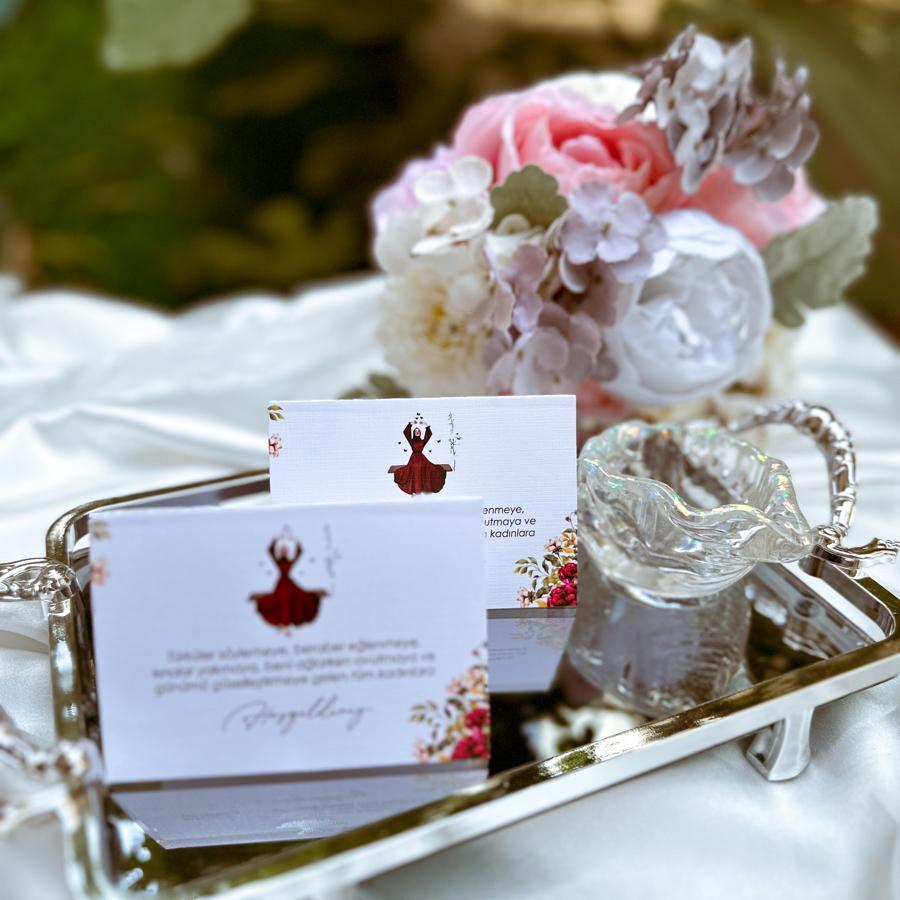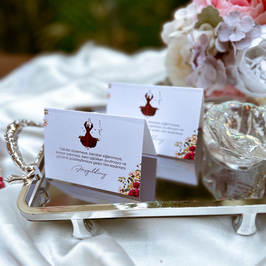 Masa kartımız katlamalı 7x10 cm dir. Dokulu 300 gr kağıda çalışılmıştır. Bilgilerinizi sipariş notunda belirtebilirsiniz.