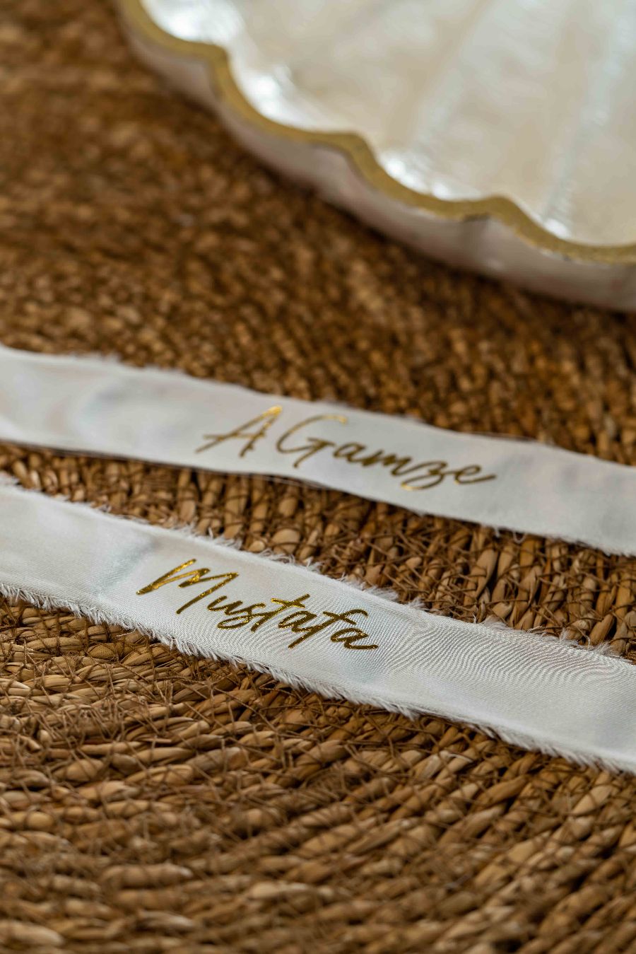 Ürün 1 metre hazırlanır, her iki uçta isimler yer alır.