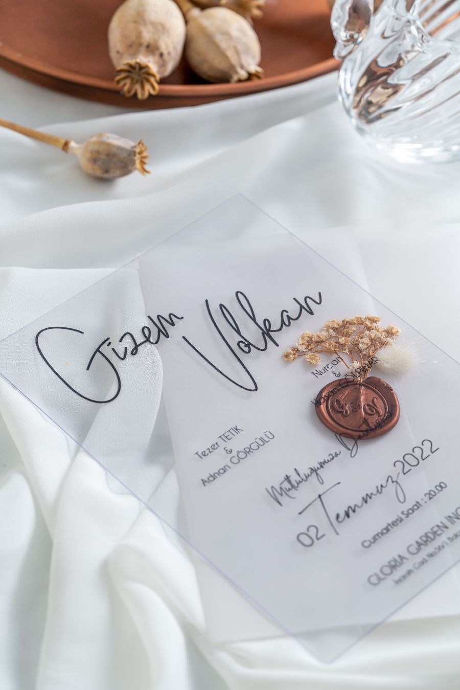 Davetiye içeriğimiz kişiye özel düzenlenmektedir. Kişiye özel mühür olursa mühür ücreti 500 tldir.