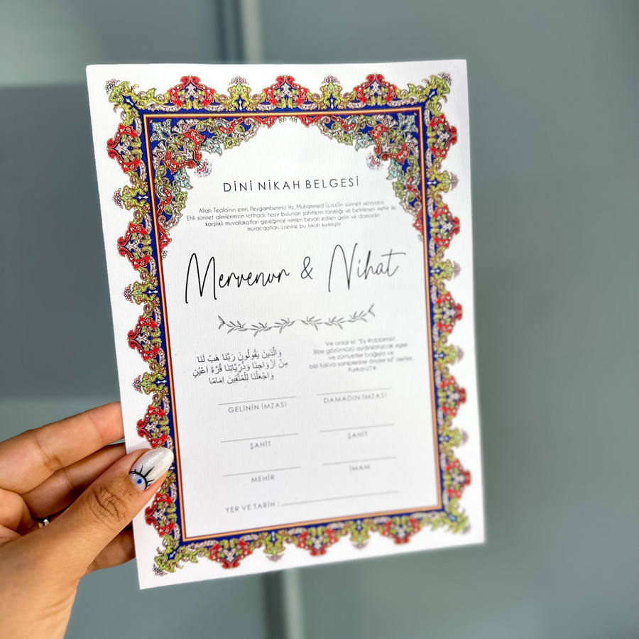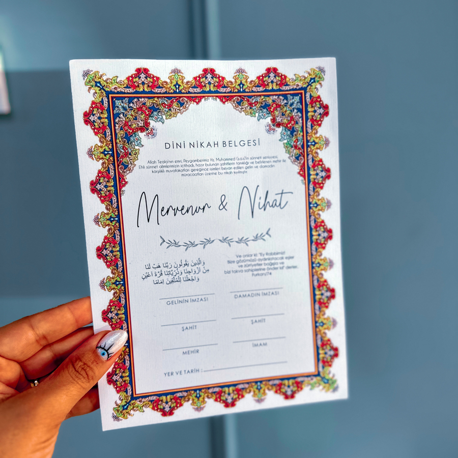 Dini belgemiz 20x30 cm ölçüsünde, dokulu 300 gr kağıda basılır.