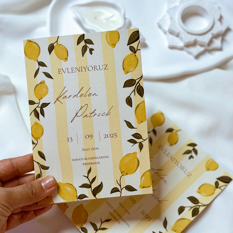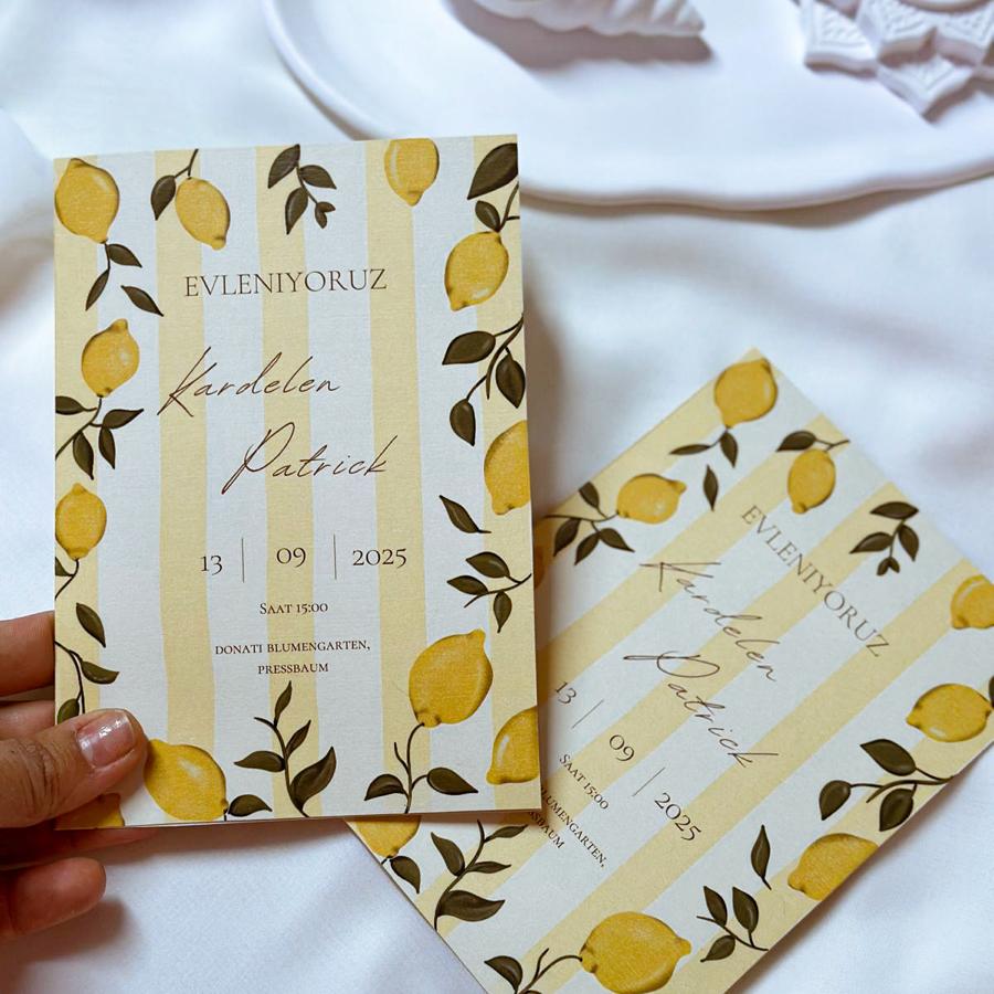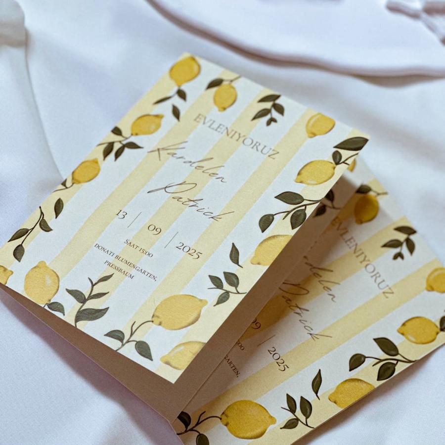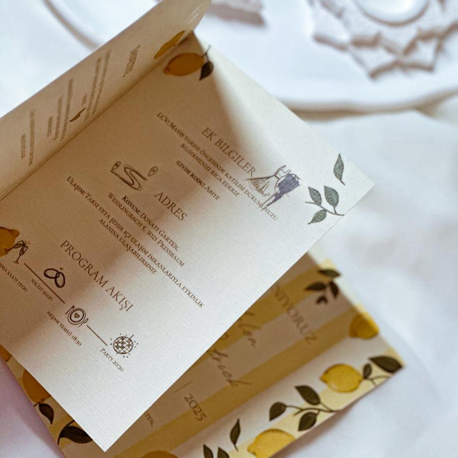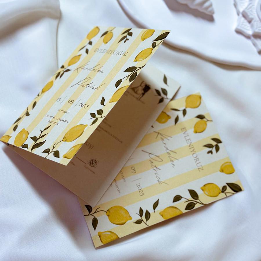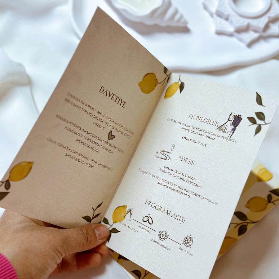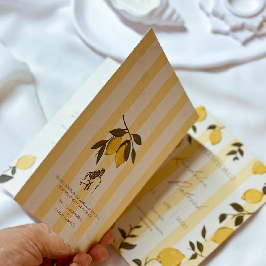 Davetiyemiz katlamalı olup, 13x18 cm ölçüsündedir.