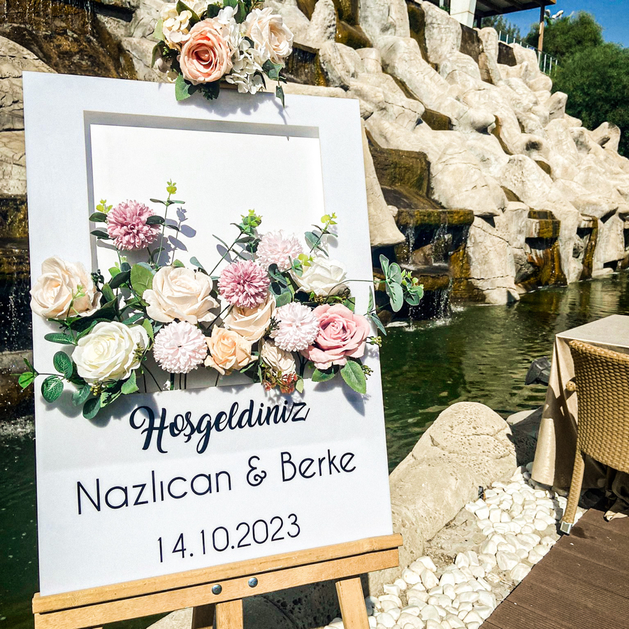 Karşılama panomuz 50x70 cm ebatlarındadır. Çiçekleri ile gönderim sağlanmaktadır.