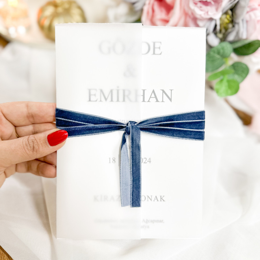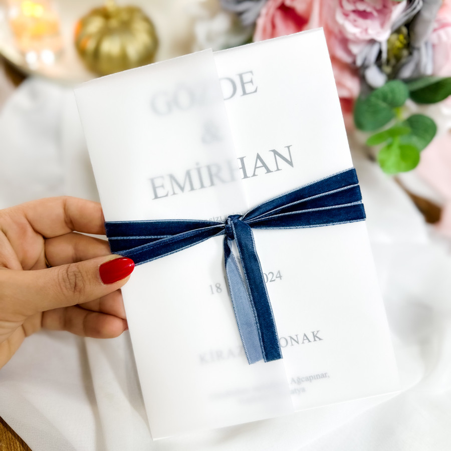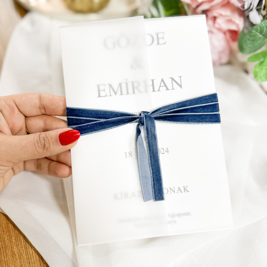 Davetiyemizin ölçüsü 13x18 cm dir. Minimum 50 adet hazırlanır. Bilgilerinizi sipariş notunda belirtebilirsiniz.