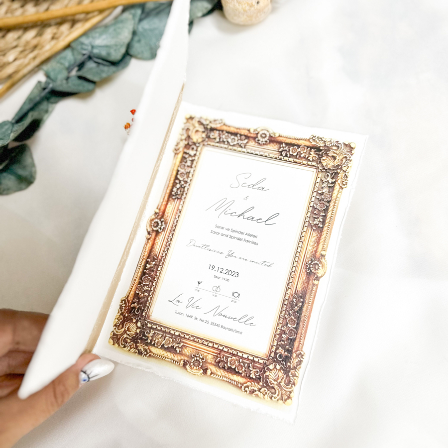 Davetiyemiz minimum 50 adet çalışılır. 14x20 cm ölçüsündedir.