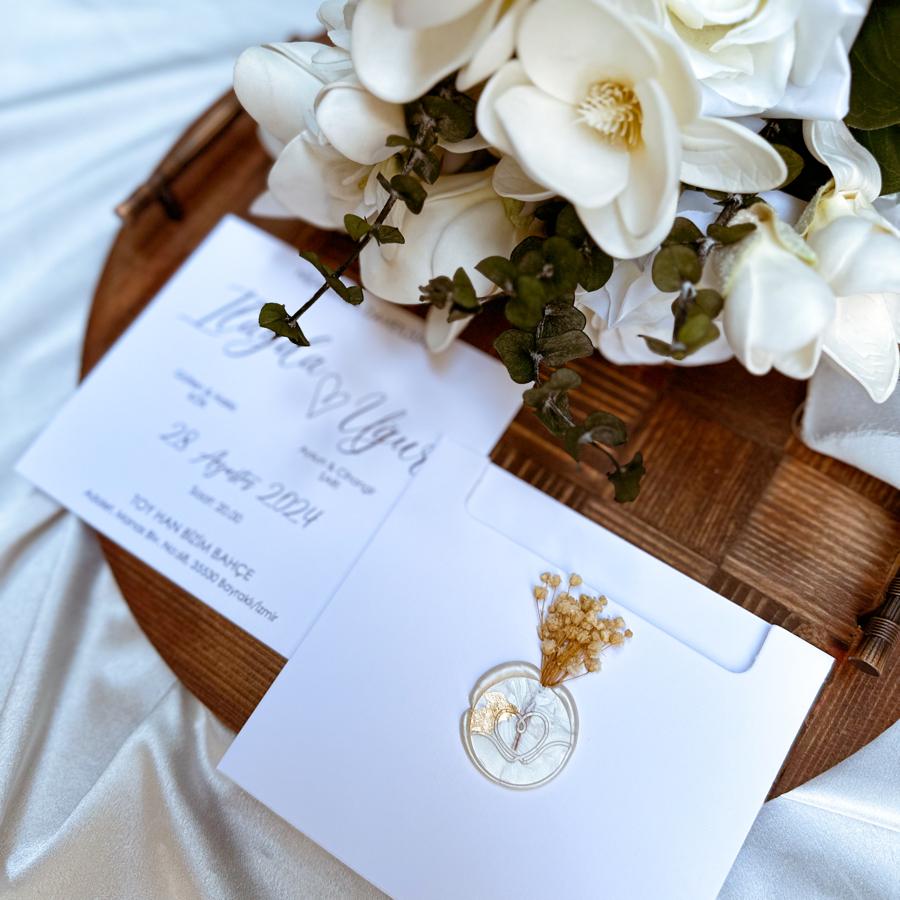 Davetiyemizin ölçüsü 13.5 x 12.5santimdir.
