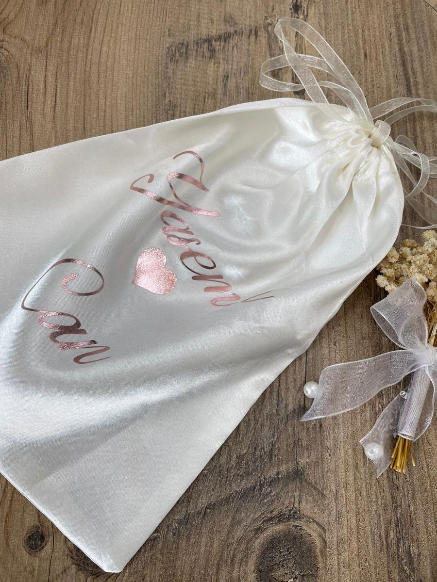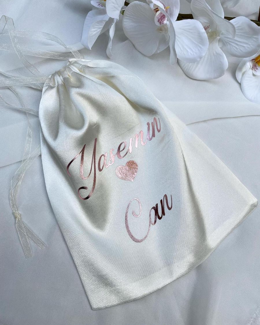 Ağız kısmı büzgülüdür, kurdele ile bağlanıp kapatılabiliniyor.