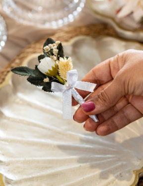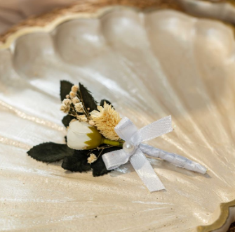 Bu özel tasarım damat yaka çiçeği buketimizde yapay ve gerçek çiçeklerden kombin oluşturulmuştur. Buket arkasındaki broş iğnesi kullanım kolaylığı sağlamaktadır.