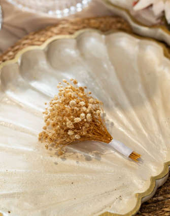 Bu özel tasarım yaka çiçeğimizde gerçek ve şoklanmış cipso çiçekler kullanılmıştır.