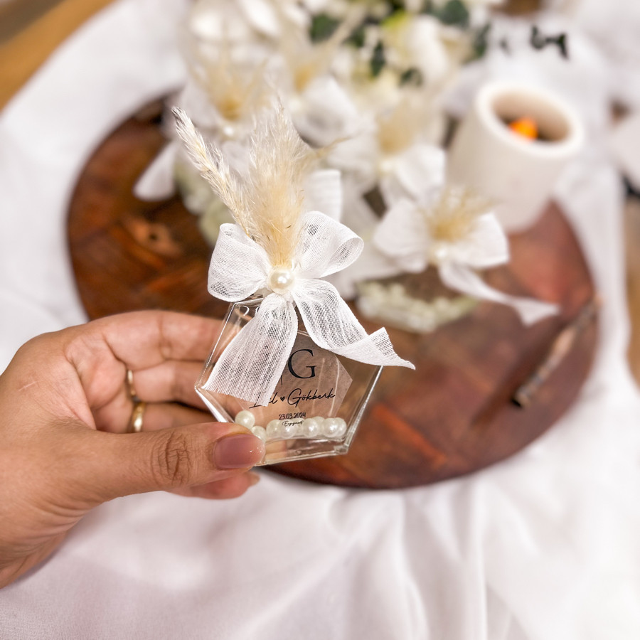 Kolonya hediyeliğimiz cam şişede olup, 50 cc dir.
