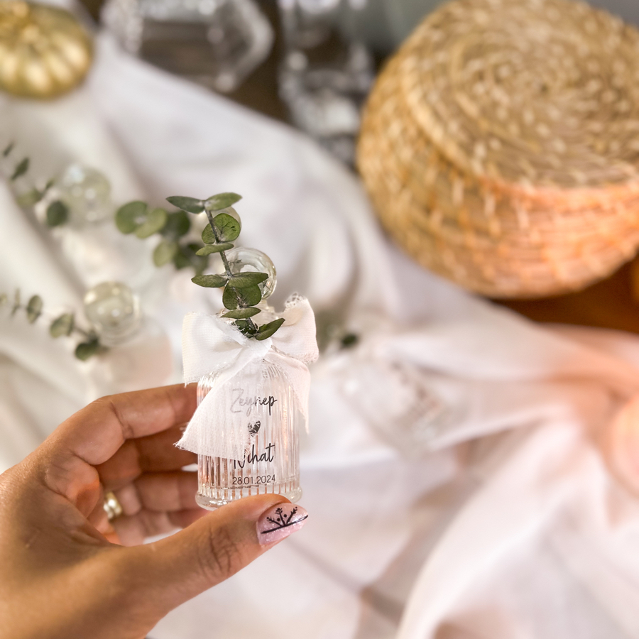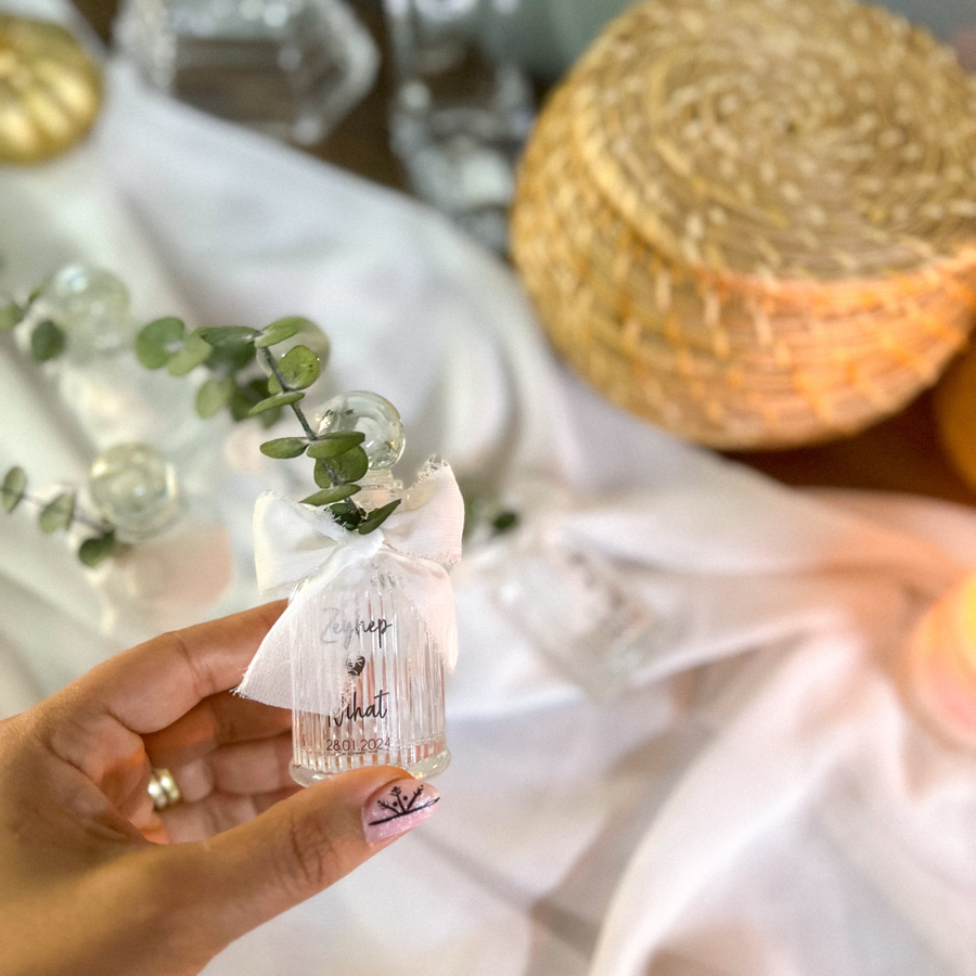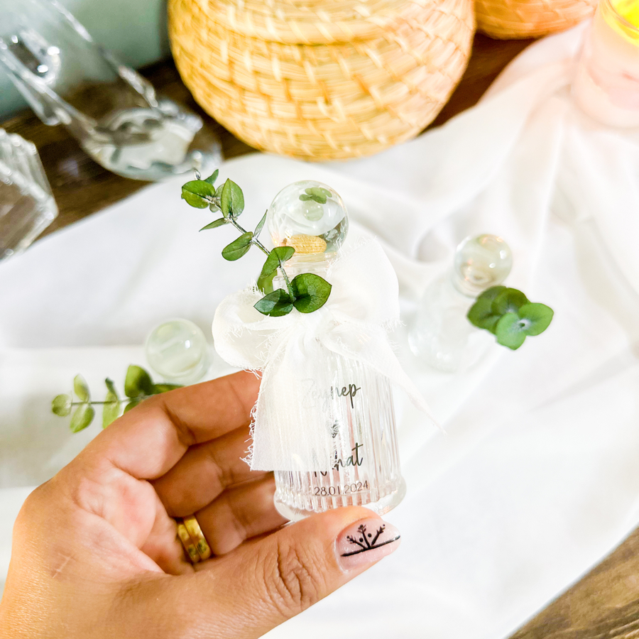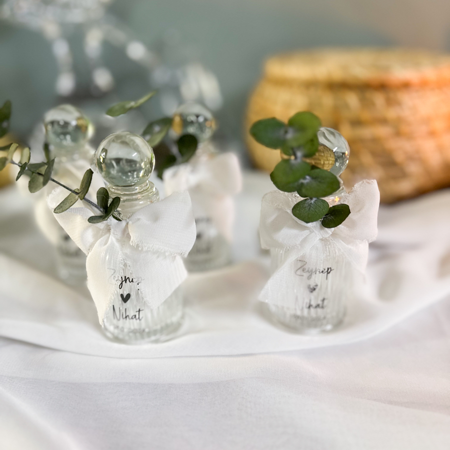 Hediyeliğimiz kristal cam şişede hazırlanır.