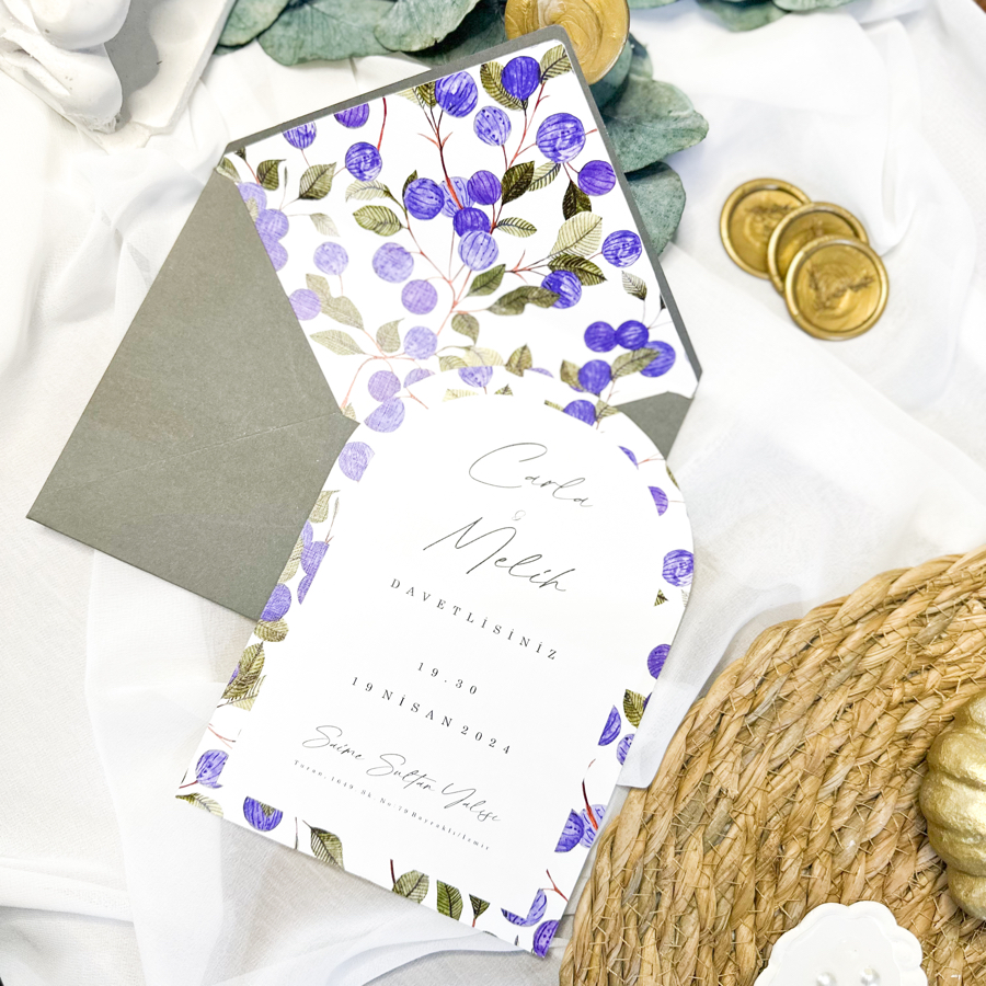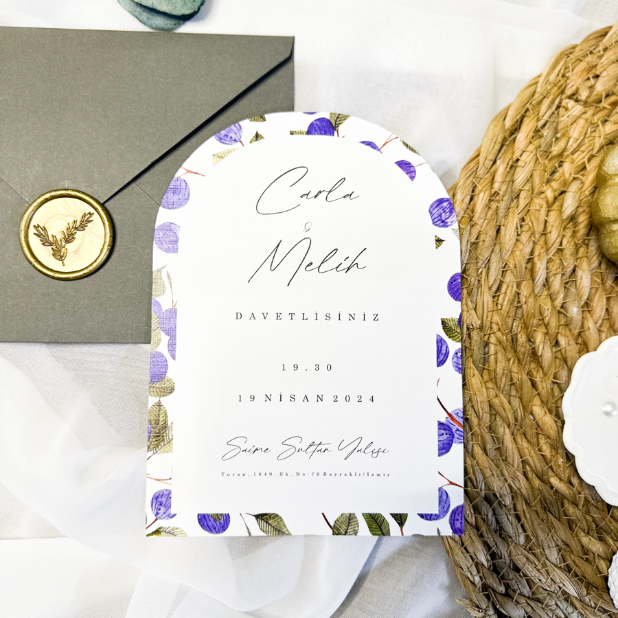 Davetiyemizin ölçüsü 13x18 cm dir.