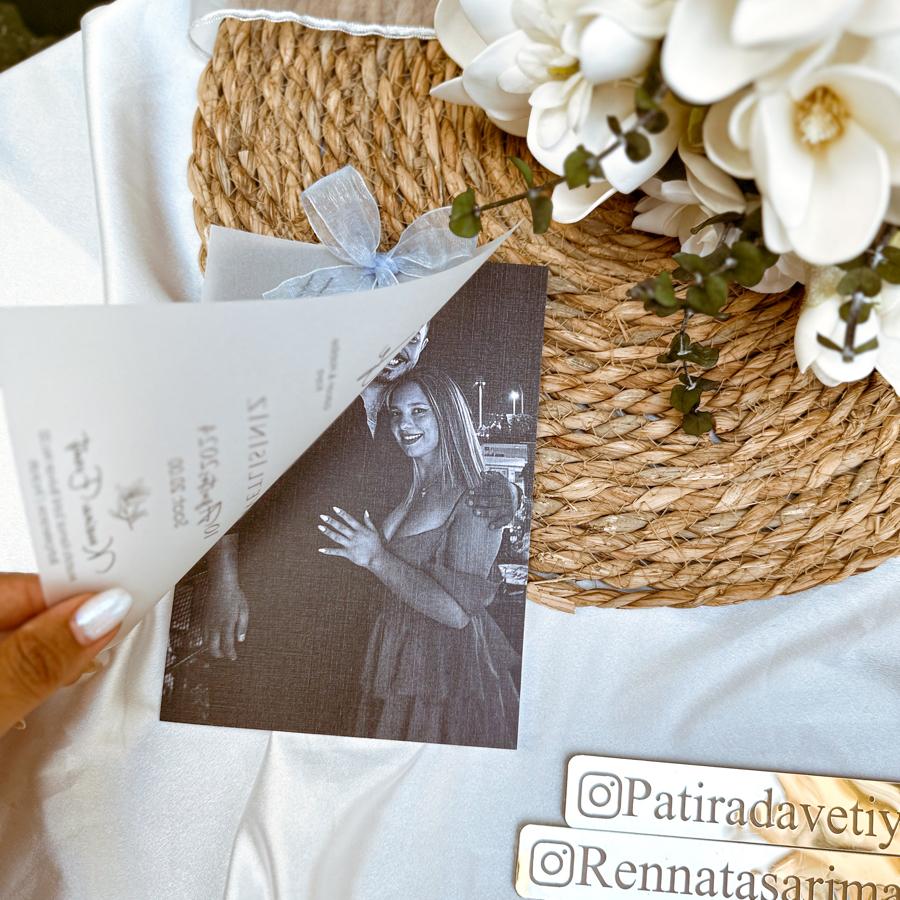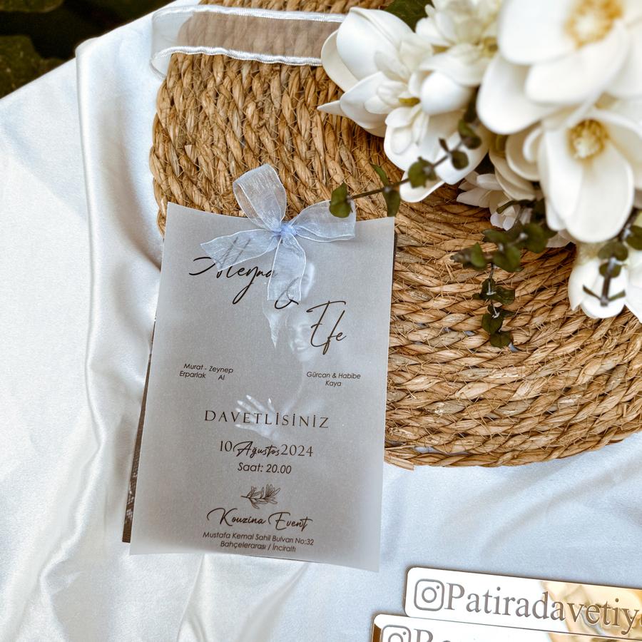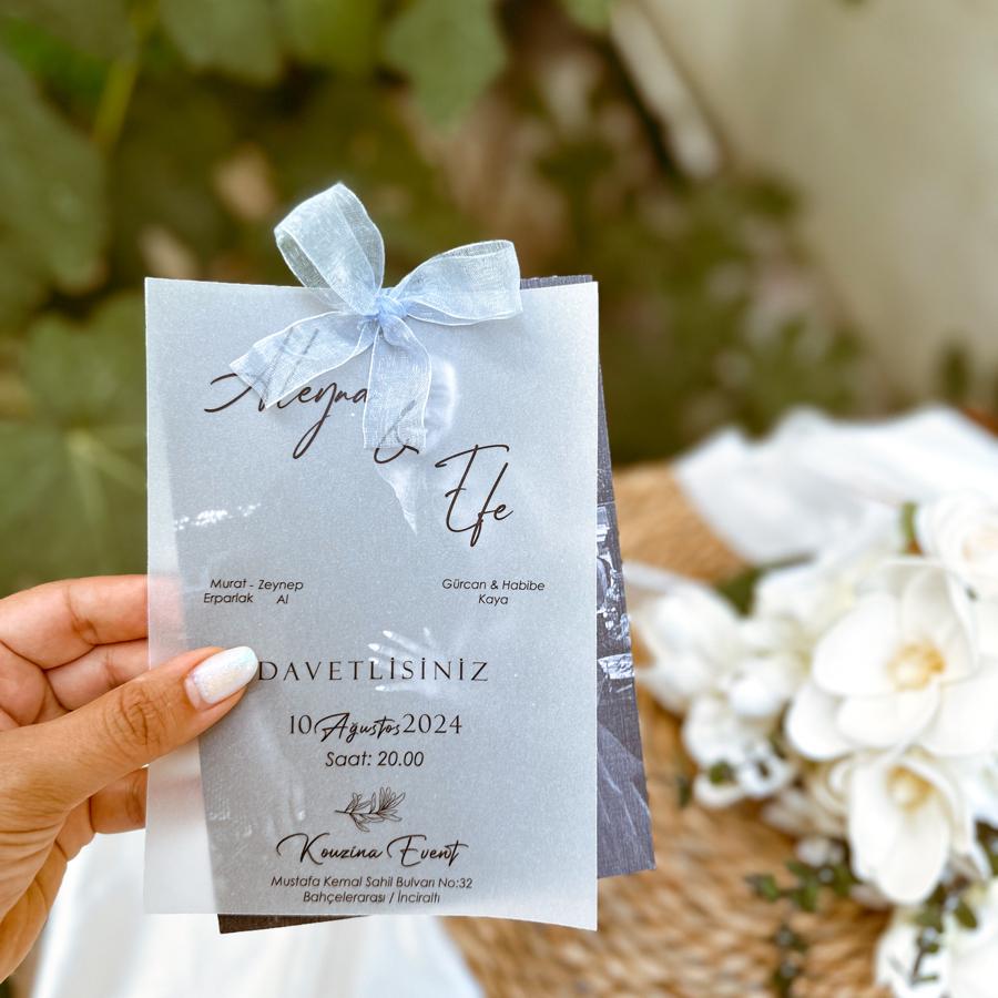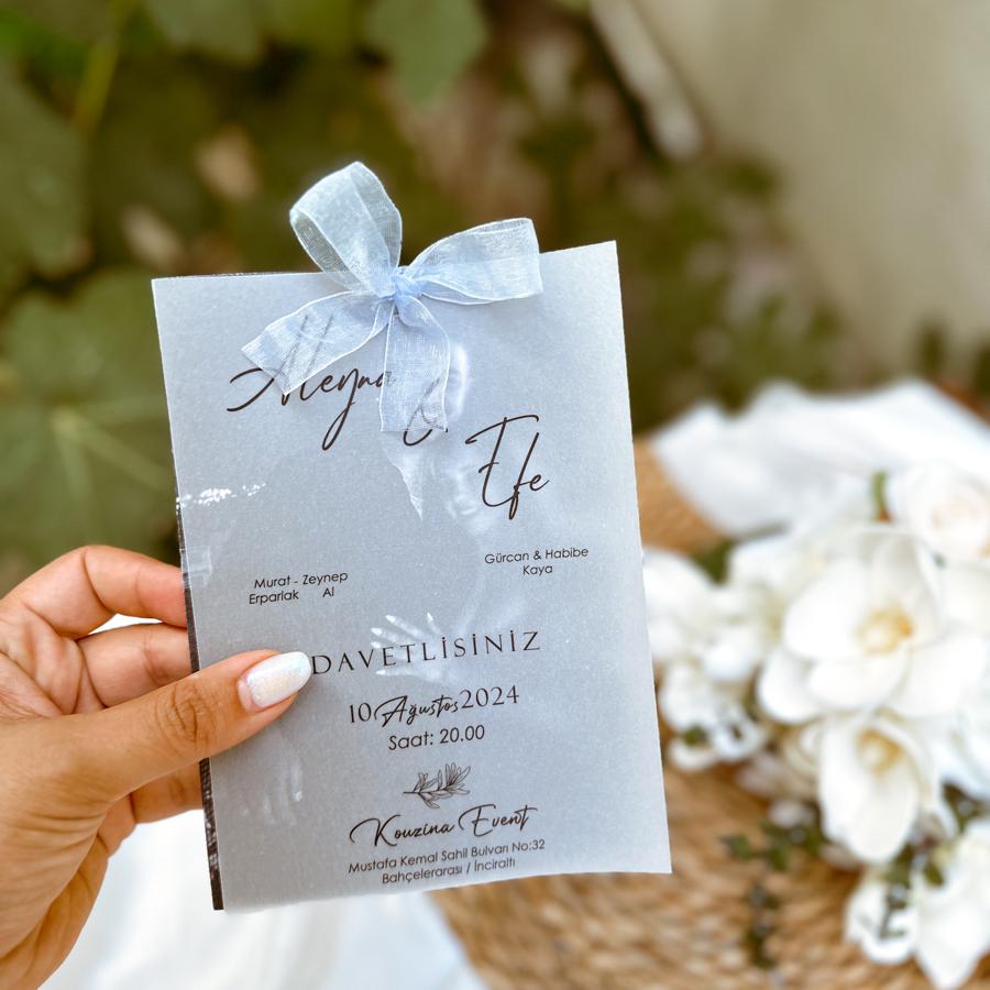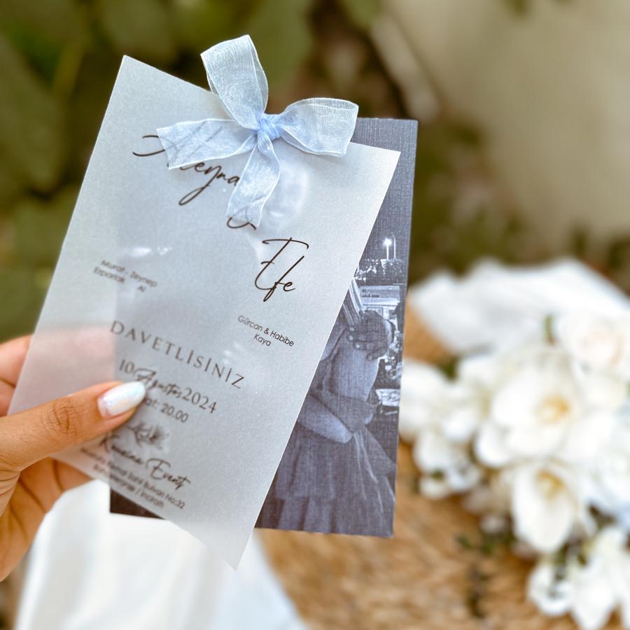 Davetiyemizin ölçüsü 13 × 18 santimdir.