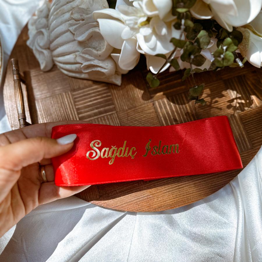 Sağdıç kurdelemiz 6 cm genişliğinde olup 40 cm genişliğindedir, cırt cırt bant bulunur tutturmak için.