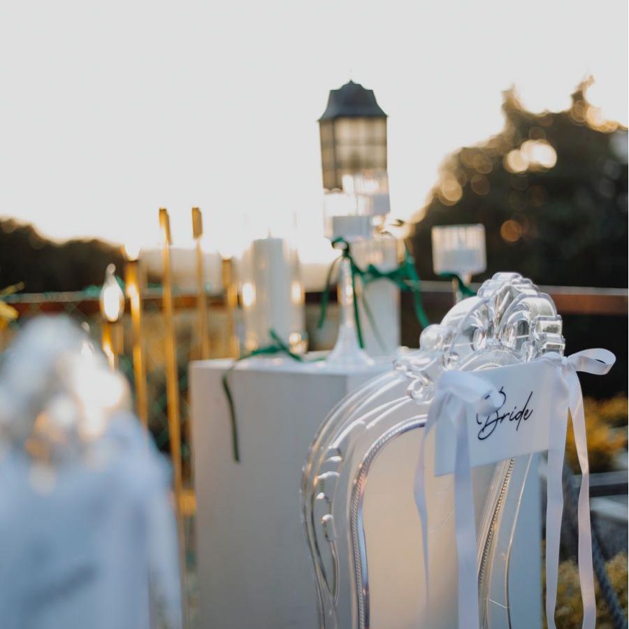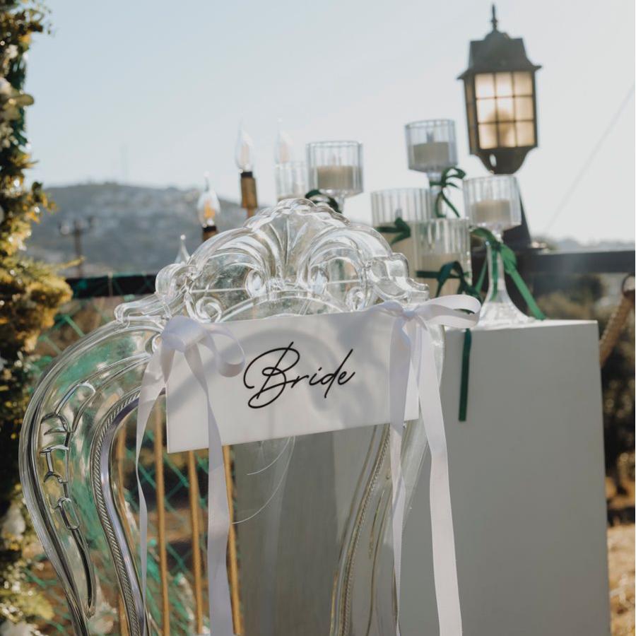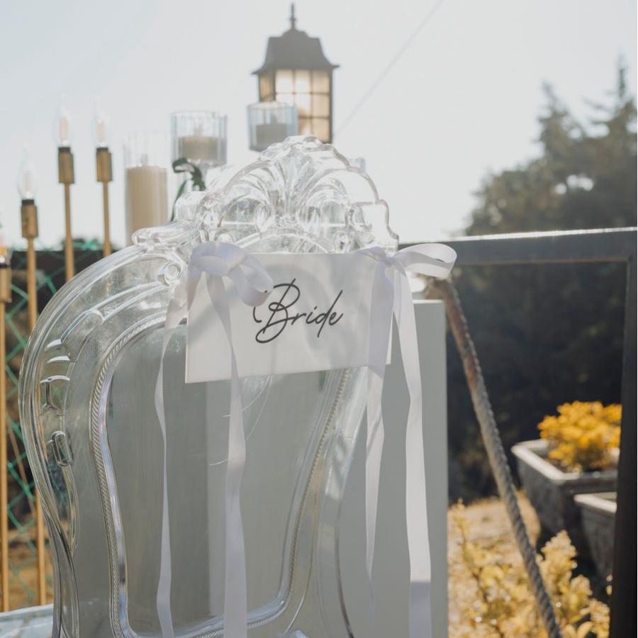 Sandalye arkası yazılarımız görseldeki gibi kurdeleli olarak gönderilir.