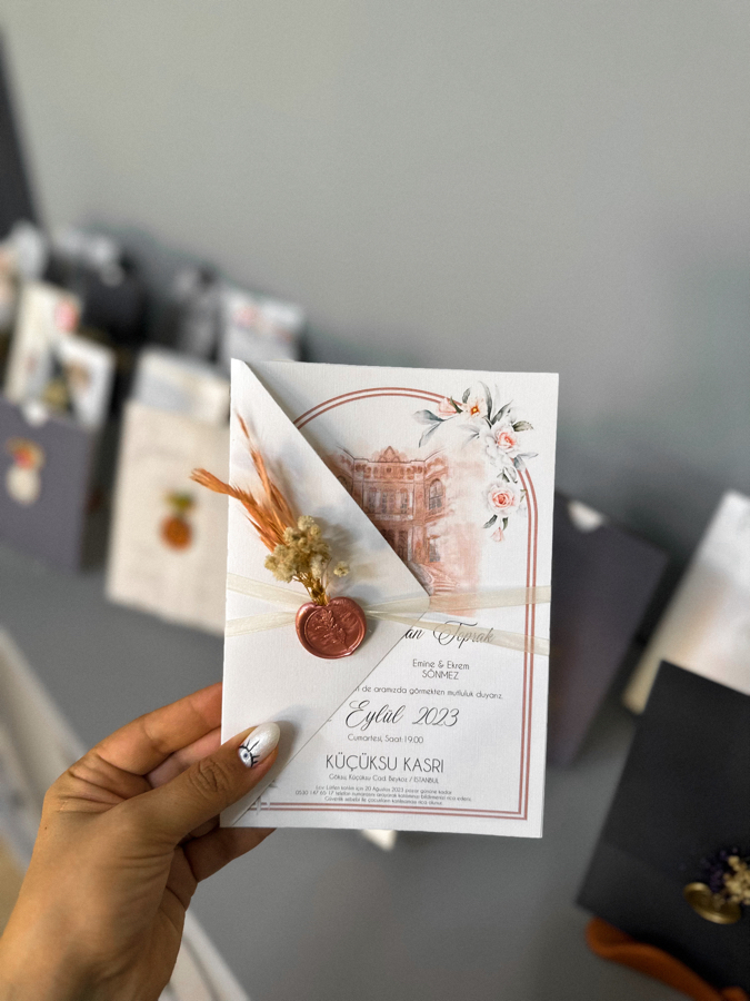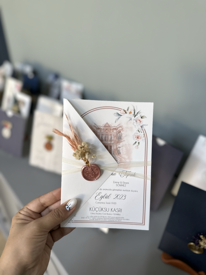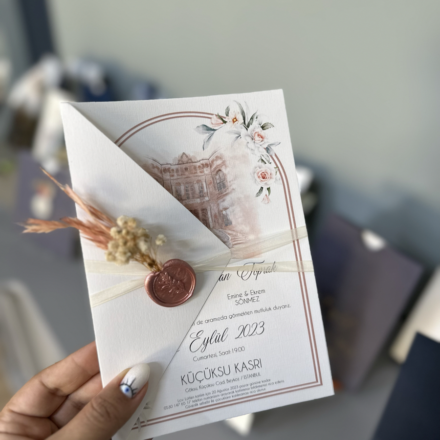 Davetiyemiz minimum 50 adet çalışılmaktadır. 14x20 cm ebatındadır.